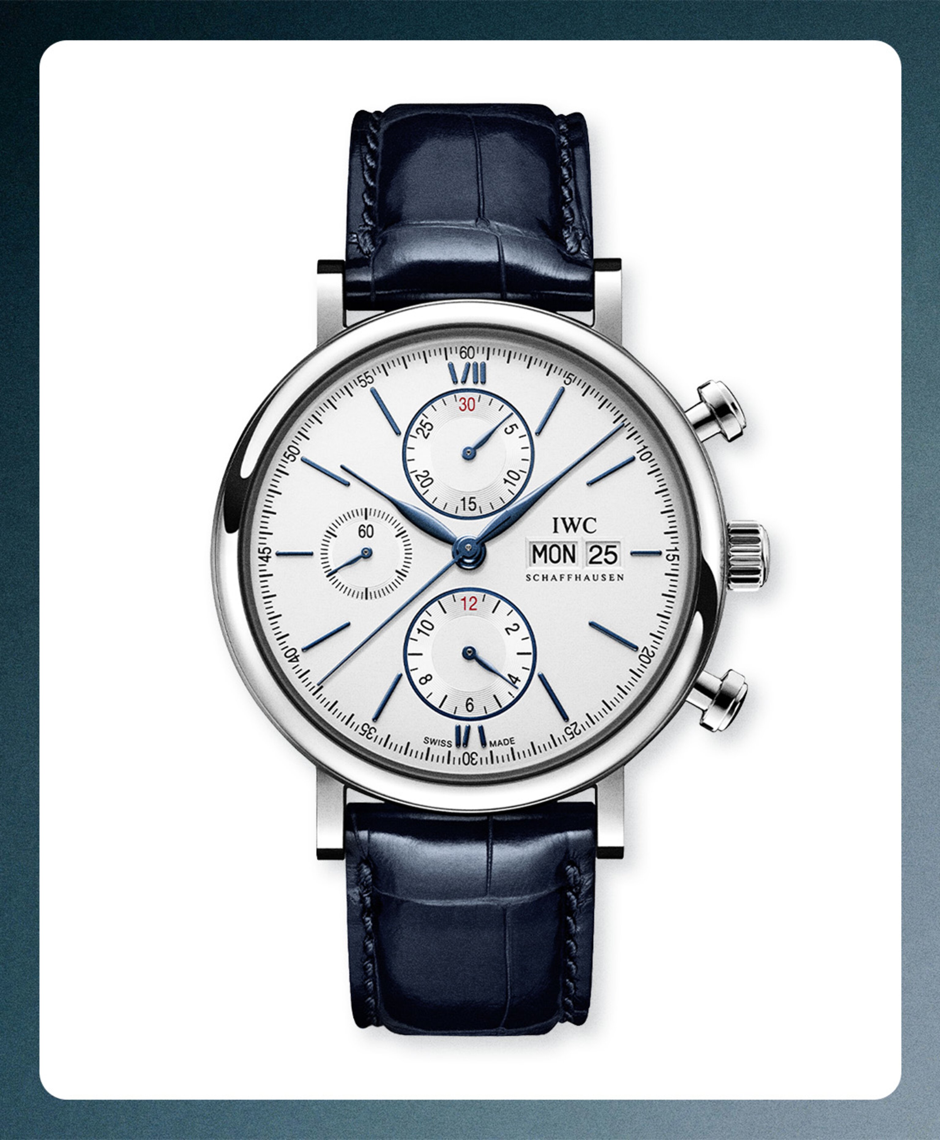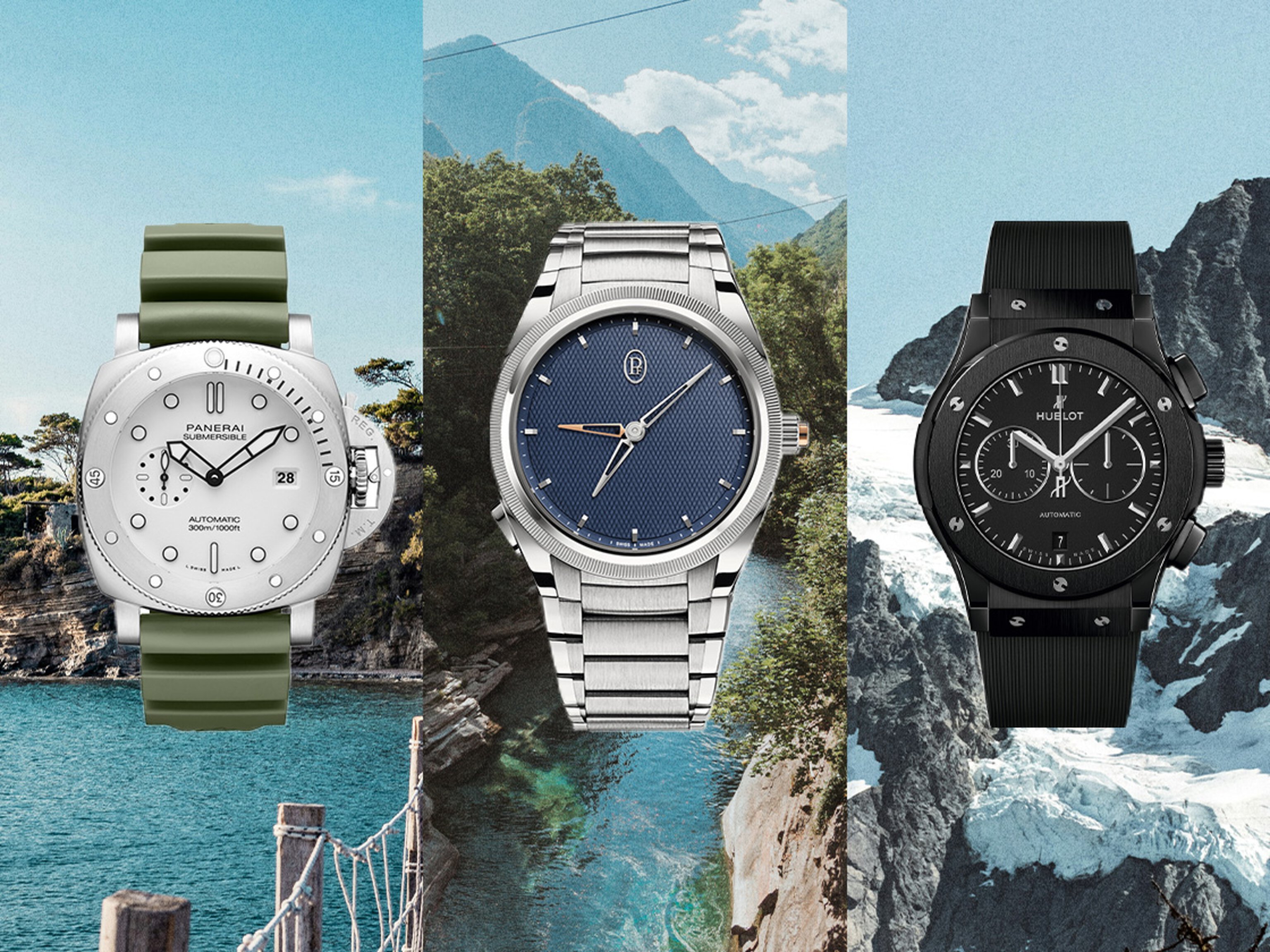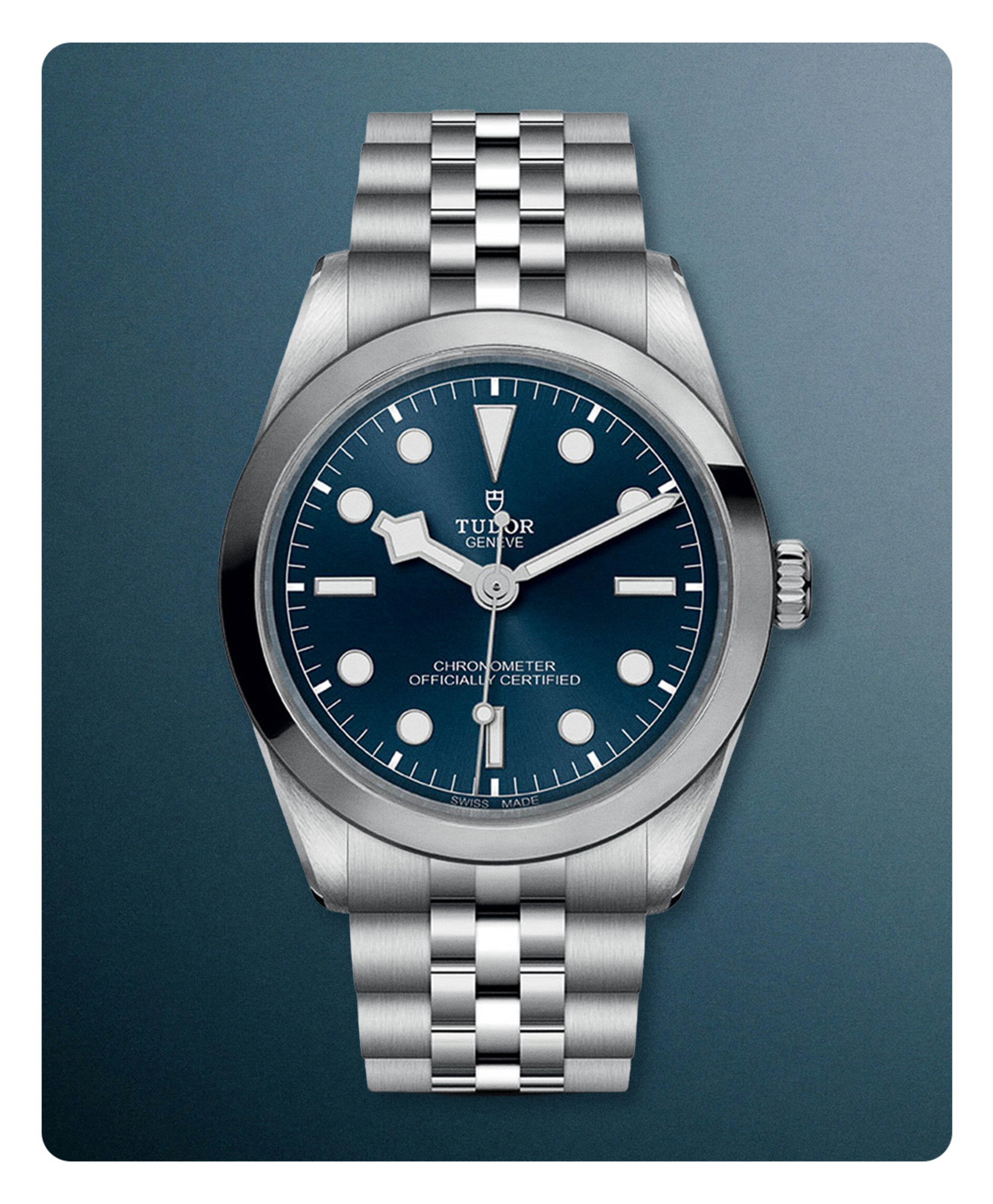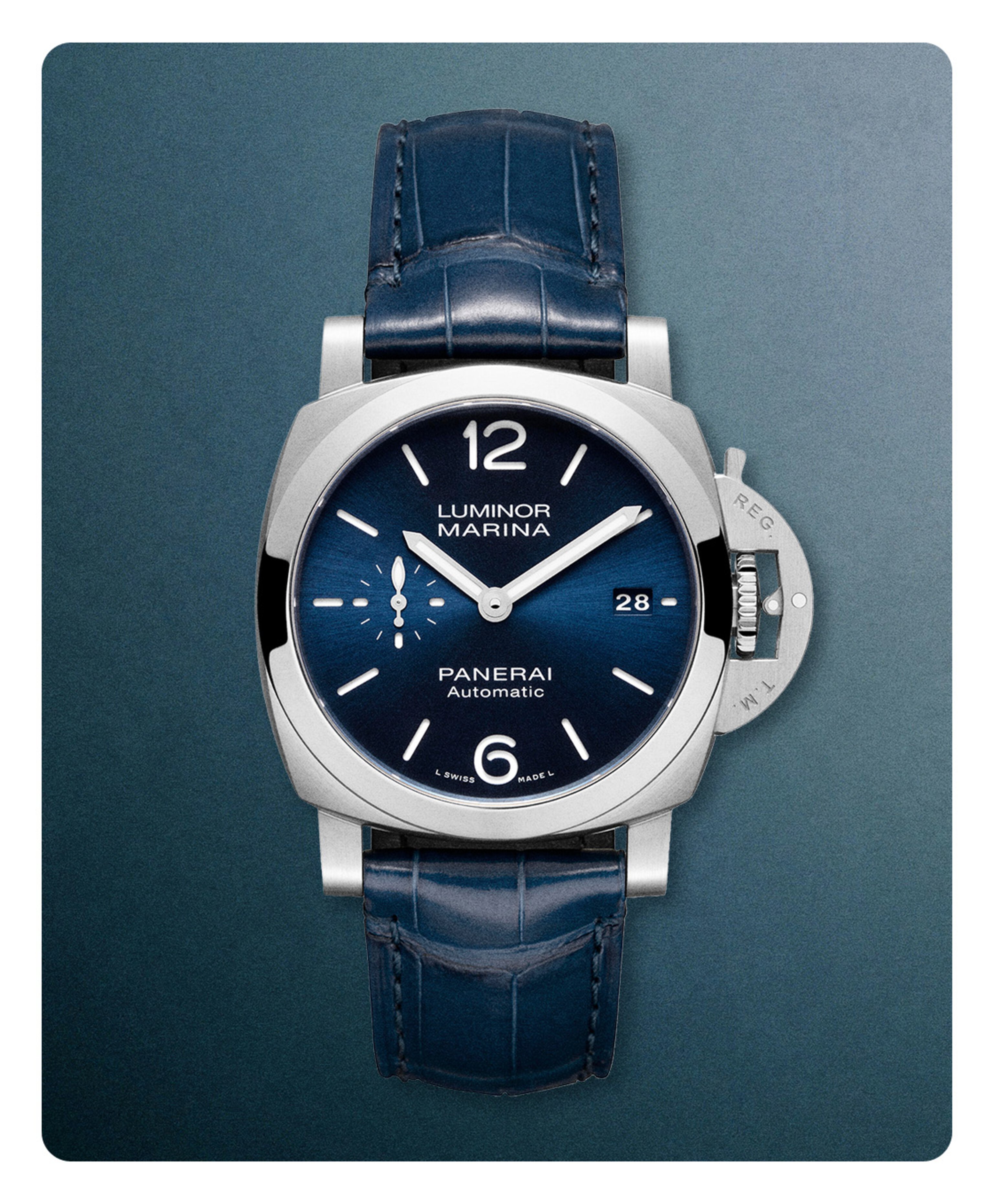 One of blue’s most positive associations is surely the sea. Panerai’s signature Luminor is one of horology’s greatest dive watches, first developed in the 1950s for use in the Italian navy. This bestselling Marina model retains all the original hallmarks: an instantly recognisable luminescent dial, maximum legibility and a patented protecting device at the crown. Notice the sun-brushed technique on the dial, a specialised technique creating a shimmering, light-catching effect – almost like the lustrous surface of the ocean.